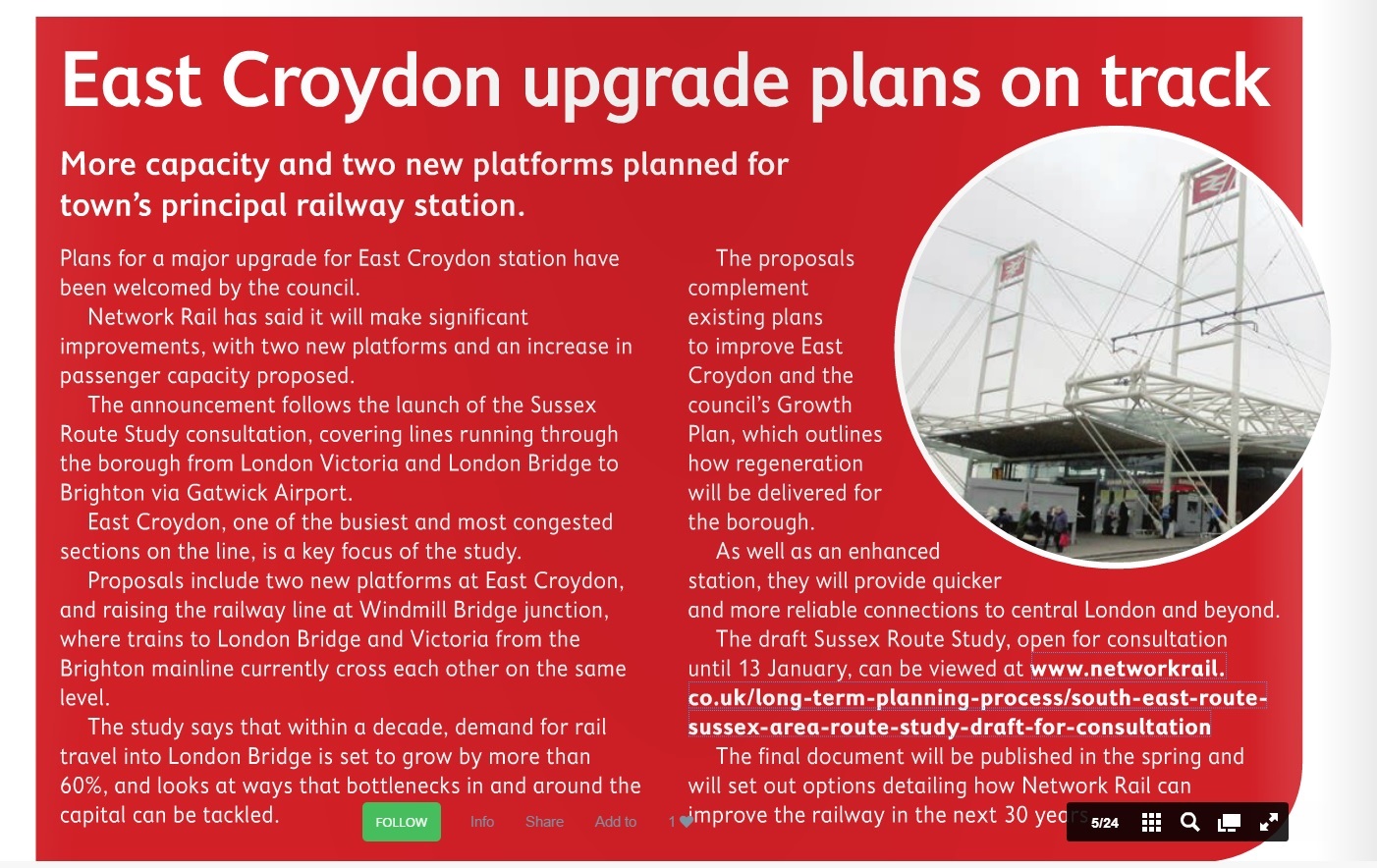 East Croydon BR Station upgrade Dec 29, 2014 · by konechni · in Uncategorized. · This can be found on page 4 of the yourCroydon community magazine. Share this: Share on X (Opens in new window) X Share on Facebook (Opens in new window) Facebook Share on Bluesky (Opens in new window) Bluesky Share on Nextdoor (Opens in new window) Nextdoor Like Loading... Related