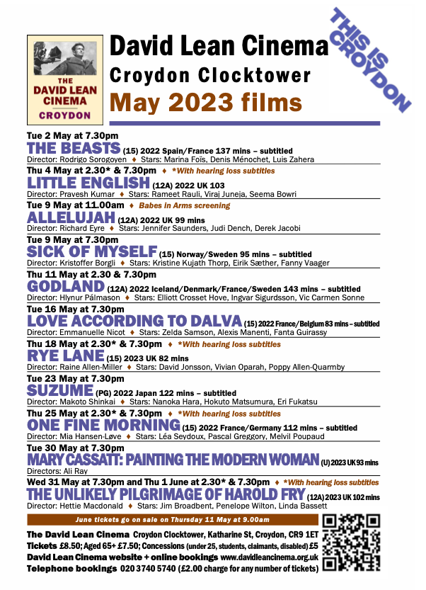 May films at the David Lean Cinema @SaveDavidLean @RuskinCroydon May 2, 2023 · by eastcroydon · in Sport & Leisure. · Share this: Share on X (Opens in new window) X Share on Facebook (Opens in new window) Facebook Share on Bluesky (Opens in new window) Bluesky Share on Nextdoor (Opens in new window) Nextdoor Like Loading... Related