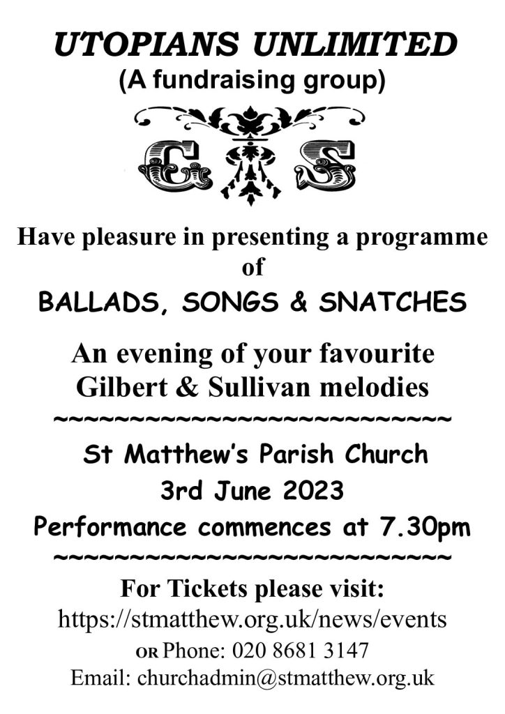 Gilbert & Sullivan’s Ballads, Songs & Snatches 7.30pm Saturday, 3 June at St Matthews, Chichester Road @StMatthewCR @CroydOrch @croydonbach @SurreyOpera @croydonphil @croydonminster May 26, 2023 · by eastcroydon · in Faith & Charity, Sport & Leisure. · £10. Click here for more information and to book tickets https://stmatthew.org.uk/other-events/701/ Share this: Share on X (Opens in new window) X Share on Facebook (Opens in new window) Facebook Share on Bluesky (Opens in new window) Bluesky Share on Nextdoor (Opens in new window) Nextdoor Like Loading... Related