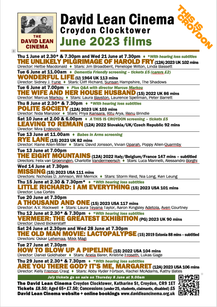June films at the David Lean Cinema, Croydon Clocktower, Katharine St @SaveDavidLean @RuskinCroydon May 31, 2023 · by eastcroydon · in Uncategorized. · Share this: Share on X (Opens in new window) X Share on Facebook (Opens in new window) Facebook Share on Bluesky (Opens in new window) Bluesky Share on Nextdoor (Opens in new window) Nextdoor Like Loading... Related