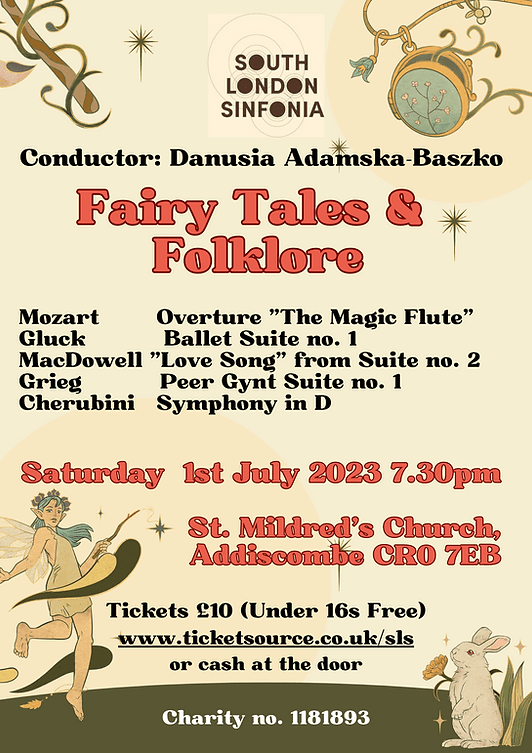 “Fairy Tales & Folklore” concert at St Mildred’s Church, Bingham Road @SLondonSinfonia @CroydOrch @croydonminster @FairfieldHalls @milliescroydon Jun 27, 2023 · by eastcroydon · in Family & Education, Sport & Leisure. · Click here for more information and to book your tickets https://www.southlondonsinfonia.co.uk/concerts Share this: Click to share on X (Opens in new window) X Click to share on Facebook (Opens in new window) Facebook Click to share on Bluesky (Opens in new window) Bluesky Click to share on Nextdoor (Opens in new window) Nextdoor Like Loading... Related