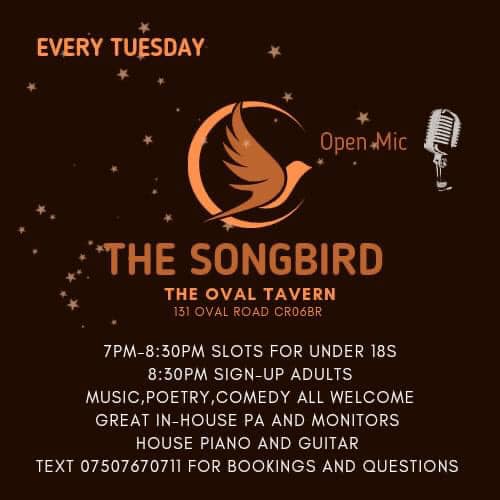 Acoustic open mic nights on Tuesdays @TheOvalTavern Jul 1, 2023 · by eastcroydon · in Get Involved, Sport & Leisure. · Share this: Click to share on X (Opens in new window) X Click to share on Facebook (Opens in new window) Facebook Click to share on Bluesky (Opens in new window) Bluesky Click to share on Nextdoor (Opens in new window) Nextdoor Like Loading... Related