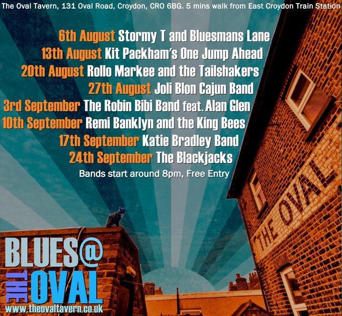 FREE Blues 8pm on Sundays in August @TheOvalTavern Aug 13, 2023 · by eastcroydon · in Sport & Leisure. · Share this: Share on X (Opens in new window) X Share on Facebook (Opens in new window) Facebook Share on Bluesky (Opens in new window) Bluesky Share on Nextdoor (Opens in new window) Nextdoor Like Loading... Related