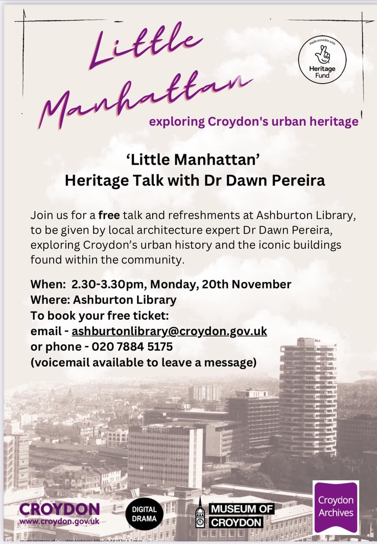 “Little Manhattan” history talk 2.30pm Monday, 20 November at Ashburton Library, Shirley Road @CroydonLibs @MuseumofCroydon @cnhssprogramme Nov 17, 2023 · by eastcroydon · in History, Sport & Leisure, Uncategorized. · Share this: Click to share on X (Opens in new window) X Click to share on Facebook (Opens in new window) Facebook Click to share on Bluesky (Opens in new window) Bluesky Click to share on Nextdoor (Opens in new window) Nextdoor Like Loading... Related