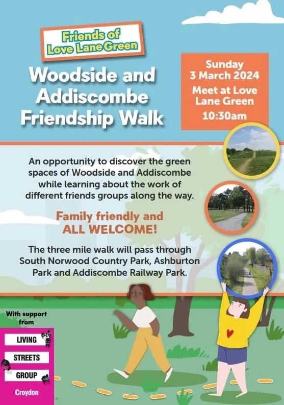 Meet at Love Lane, near Norwood Junction. Click here for more information about the Friends of Love Lane Green https://www.facebook.com/FriendsOfLoveLaneGreen/