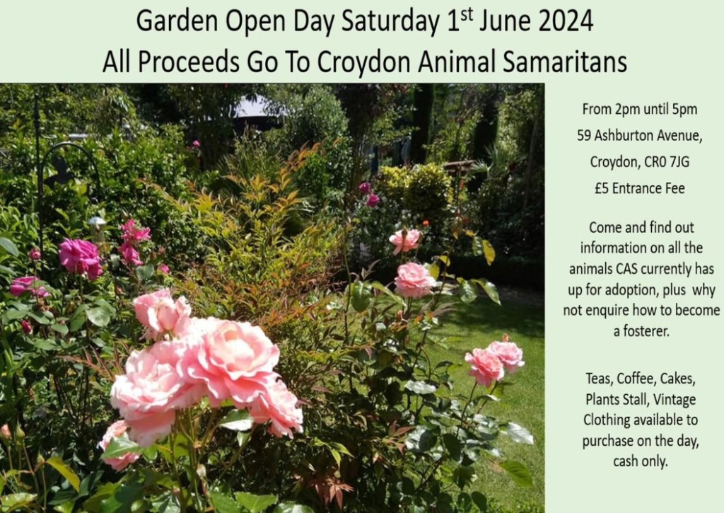 Garden open day 2-5pm Saturday, 1 June at 59 Ashburton Avenue May 30, 2024 · by eastcroydon · in Faith & Charity, Sport & Leisure. · Click here for more information about Croydon Animal Samaritans https://www.croydonanimalsamaritans.co.uk Share this: Click to share on X (Opens in new window) X Click to share on Facebook (Opens in new window) Facebook Click to share on Bluesky (Opens in new window) Bluesky Click to share on Nextdoor (Opens in new window) Nextdoor Like Loading... Related