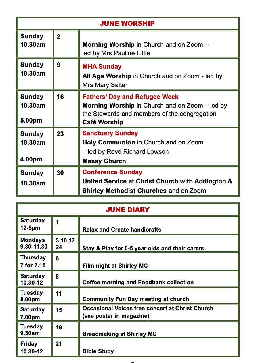 June diary for Christ Church, 114 Lower Addiscombe Road May 31, 2024 · by eastcroydon · in Faith & Charity, Family & Education. · Share this: Click to share on X (Opens in new window) X Click to share on Facebook (Opens in new window) Facebook Click to share on Bluesky (Opens in new window) Bluesky Click to share on Nextdoor (Opens in new window) Nextdoor Like Loading... Related