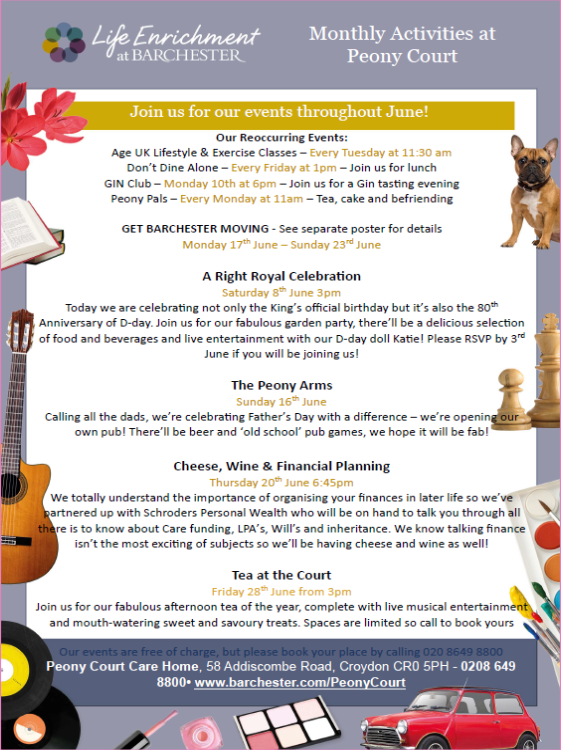 Gin tasting & other events in June at Peony Court Care Home, 58 Addiscombe Road Jun 3, 2024 · by eastcroydon · in Family & Education, Sport & Leisure. · Share this: Click to share on X (Opens in new window) X Click to share on Facebook (Opens in new window) Facebook Click to share on Bluesky (Opens in new window) Bluesky Click to share on Nextdoor (Opens in new window) Nextdoor Like Loading... Related