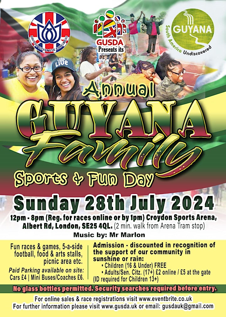 Click here for more information and to book your tickets https://www.eventbrite.co.uk/e/guyana-family-sports-fun-day-2024-tickets-918583878107?aff=ebdssbdestsearch