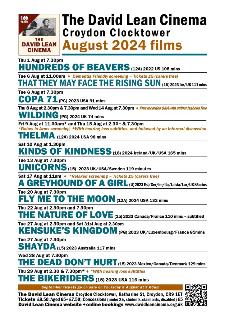 August films at the David Lean Cinema, Katharine Street @SaveDavidLean Aug 3, 2024 · by eastcroydon · in Sport & Leisure. · Share this: Click to share on X (Opens in new window) X Click to share on Facebook (Opens in new window) Facebook Click to share on Bluesky (Opens in new window) Bluesky Click to share on Nextdoor (Opens in new window) Nextdoor Like Loading... Related