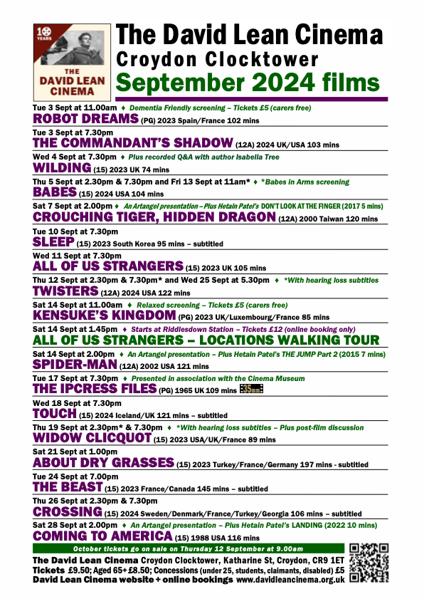 September films at the David Lean Cinema, Croydon Clocktower, Katharine Street @SaveDavidLean @RuskinCroydon Sep 3, 2024 · by eastcroydon · in Sport & Leisure. · Share this: Click to share on X (Opens in new window) X Click to share on Facebook (Opens in new window) Facebook Click to share on Bluesky (Opens in new window) Bluesky Click to share on Nextdoor (Opens in new window) Nextdoor Like Loading... Related