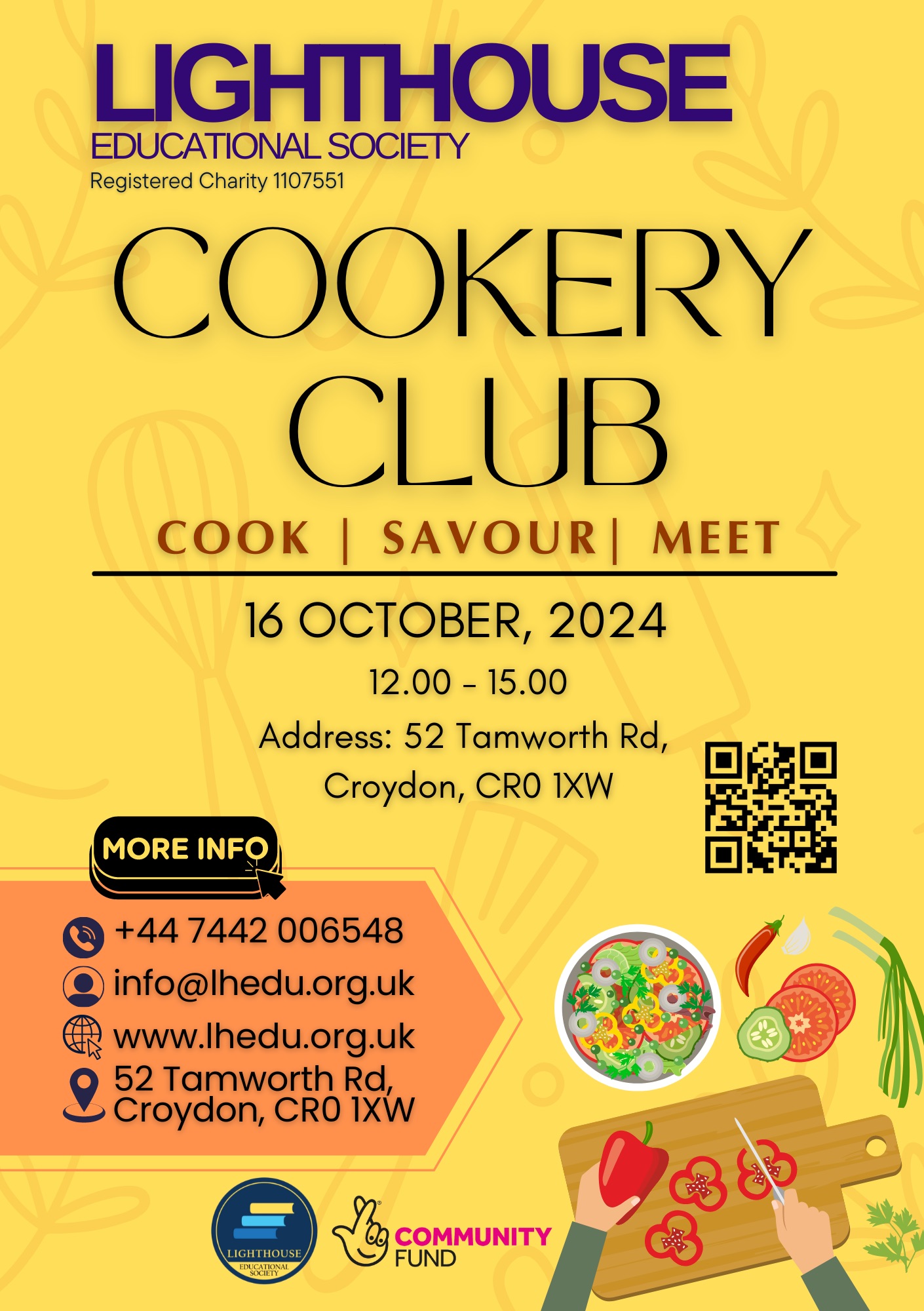 Cookery Club 12pm Wednesday, 16 October at Lighthouse, 52 Tamworth Road Oct 14, 2024 · by eastcroydon · in Family & Education, Sport & Leisure. · More information about Lighthouse Educational Society https://www.lhedu.org.uk/branches/croydon/ Share this: Click to share on X (Opens in new window) X Click to share on Facebook (Opens in new window) Facebook Click to share on Bluesky (Opens in new window) Bluesky Click to share on Nextdoor (Opens in new window) Nextdoor Like Loading... Related