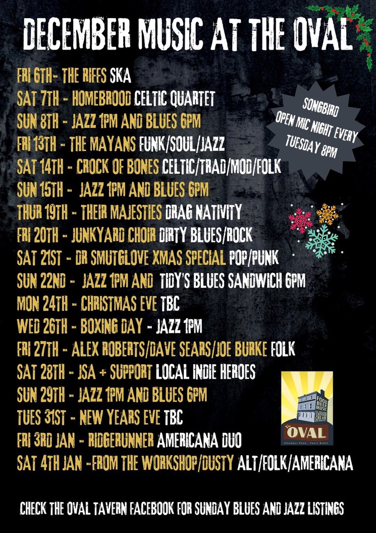 December music @TheOvalTavern Dec 1, 2024 · by eastcroydon · in Sport & Leisure, Uncategorized. · Share this: Click to share on X (Opens in new window) X Click to share on Facebook (Opens in new window) Facebook Click to share on Bluesky (Opens in new window) Bluesky Click to share on Nextdoor (Opens in new window) Nextdoor Like Loading... Related