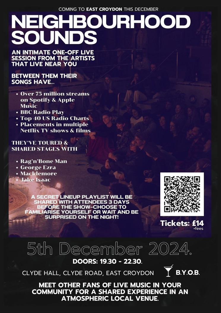 More information & tickets https://www.eventbrite.co.uk/e/neighbourhood-sounds-live-session-at-clyde-hall-tickets-1087111362349
