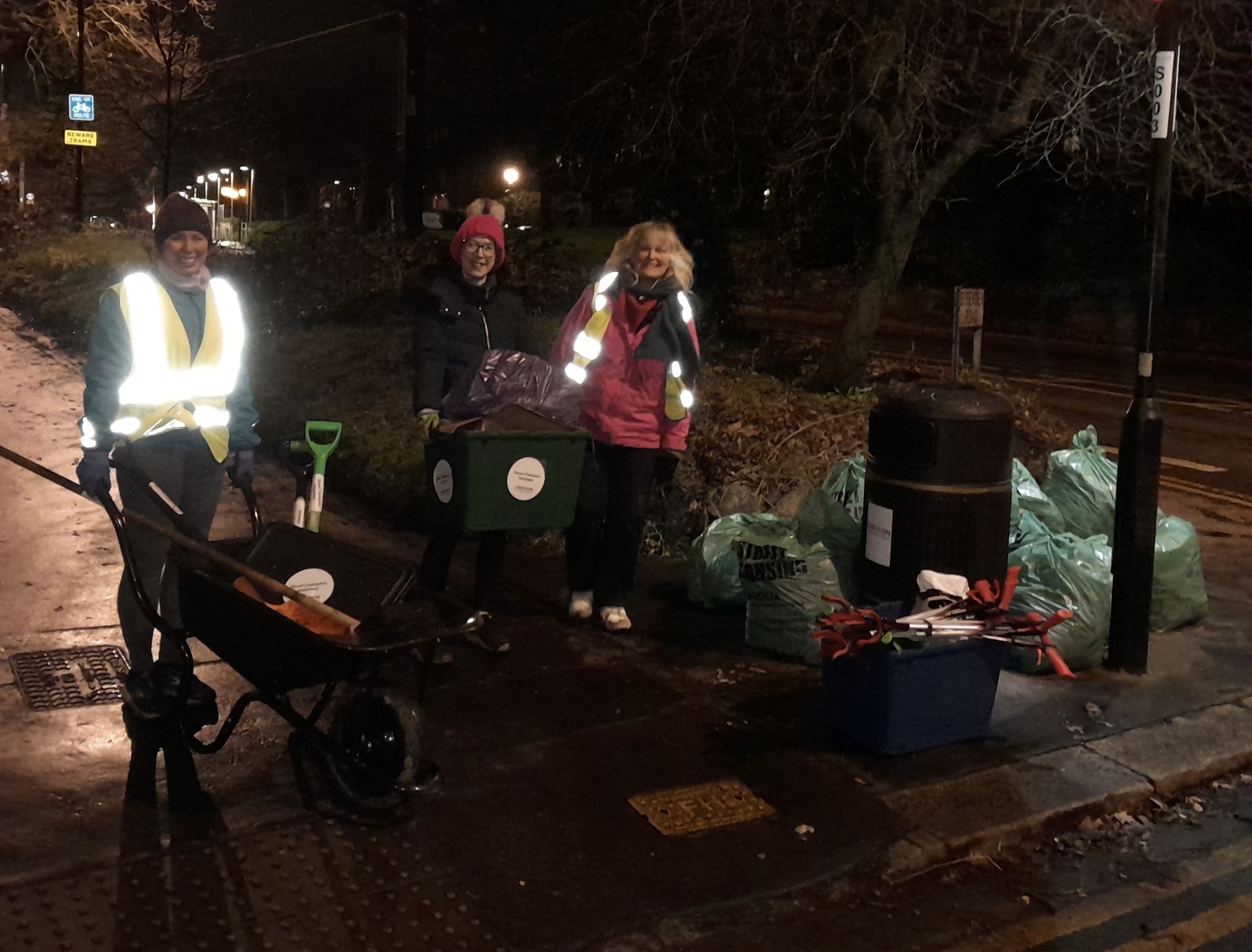 Other volunteers picked up litter and removed weeds and overgrowth. 13 bags were filled with green waste, and two with litter. A great effort on a night when volunteers were chilled to the bone. The bags were duly removed by Veolia.