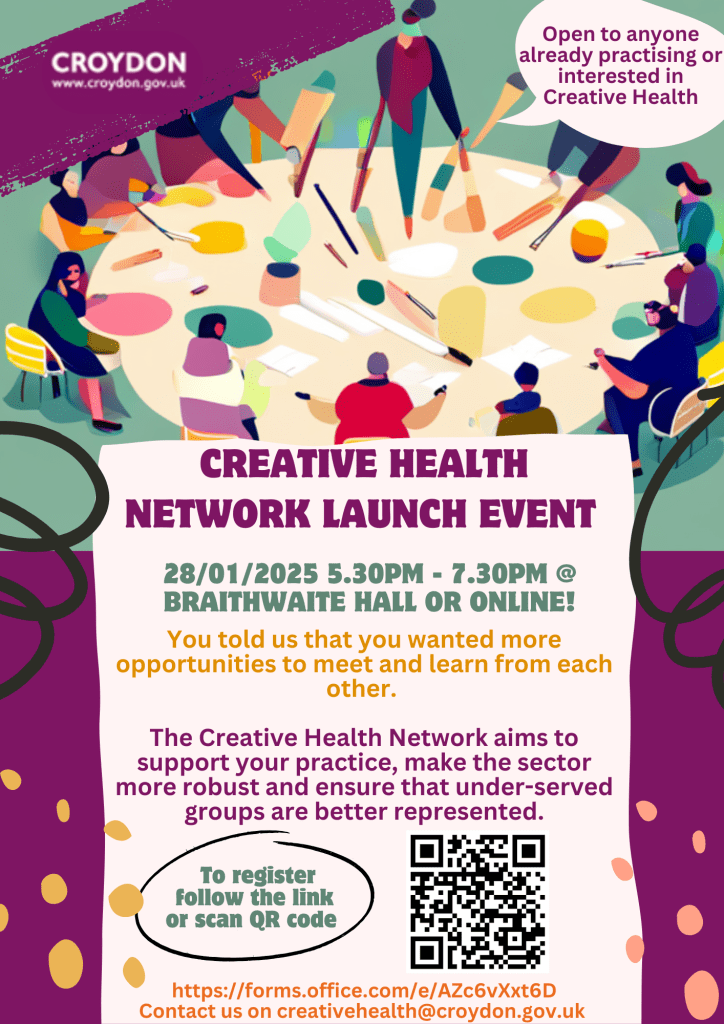 If you have any questions or if you can’t join the launch event but are still interested in the network, please email creativehealth@croydon.gov.uk