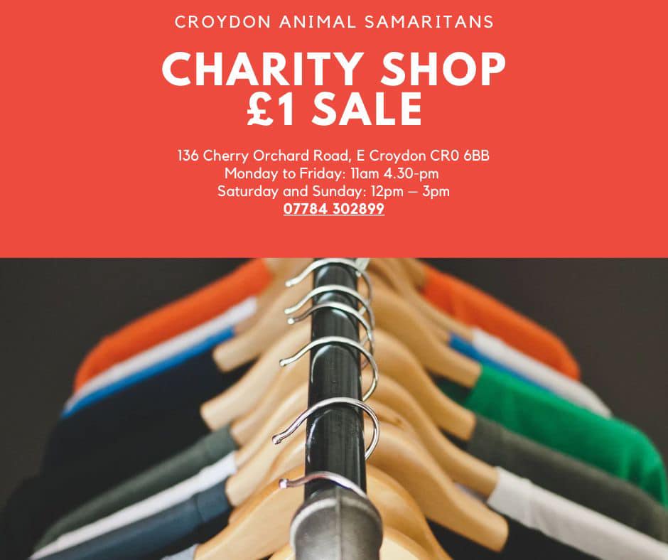 £1 sale at Croydon Animal Samaritan charity shop, 136 Cherry Orchard Road Jan 6, 2025 · by eastcroydon · in Faith & Charity, Pets & Other Animals, Shopping & Take-aways. · More information https://www.croydonanimalsamaritans.co.uk/?fbclid=IwZXh0bgNhZW0CMTAAAR2zZDXiO29MzBMI9qMYS-mGjOvpVaQ-WDTDZa9YBXMXZA02q3JnkAqE-8U_aem_0870zKlAEJdRtEwTKoFauA Share this: Click to share on X (Opens in new window) X Click to share on Facebook (Opens in new window) Facebook Click to share on Bluesky (Opens in new window) Bluesky Click to share on Nextdoor (Opens in new window) Nextdoor Like Loading... Related