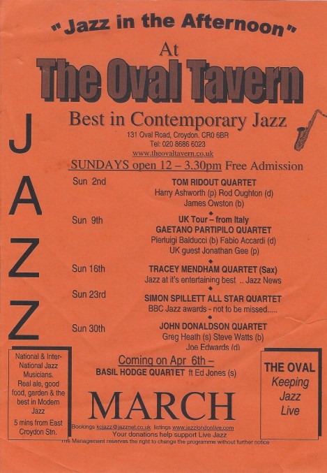 Jazz in March @TheOvalTavern Mar 2, 2025 · by eastcroydon · in Sport & Leisure. · Share this: Click to share on X (Opens in new window) X Click to share on Facebook (Opens in new window) Facebook Click to share on Bluesky (Opens in new window) Bluesky Click to share on Nextdoor (Opens in new window) Nextdoor Like Loading... Related