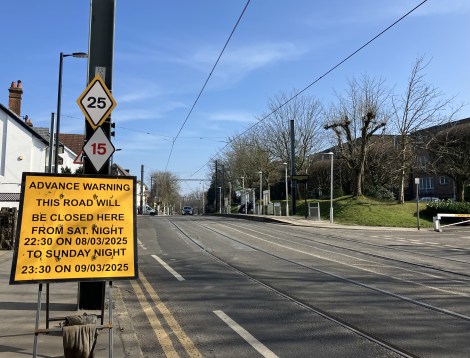 The closure is to allow repairs to the tram track near the Lebanon Road stop and near the Cherry Orchard Road junction. Access to Leyburn Gardens will also be restricted.