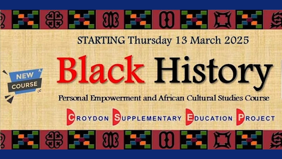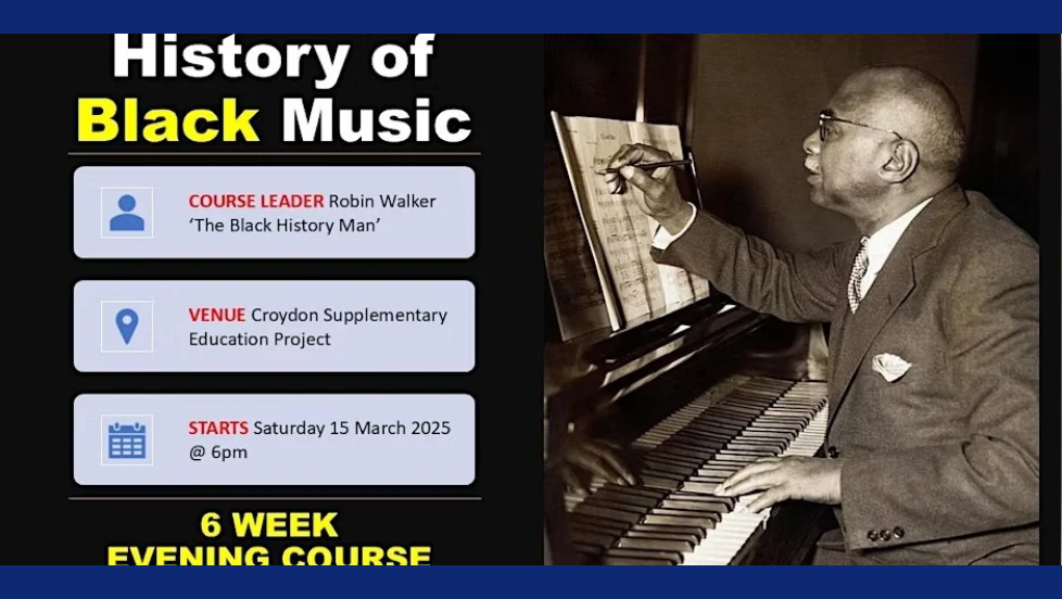 Black History course from 13 March & the History of Black Music course from 15 March at Croydon Supplementary Education Project, 32-34 Sydenham Road @CSEP8 @MuseumofCroydon @CroydonBMEForum