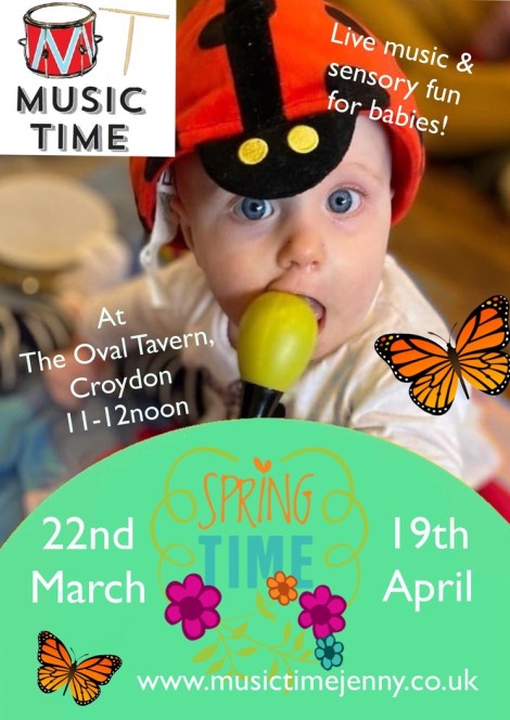 Music Time for babies 11am Saturdays 22 March & 19 April @TheOvalTavern Mar 19, 2025 · by eastcroydon · in Family & Education, Sport & Leisure. · More information https://www.musictimejenny.co.uk Share this: Click to share on X (Opens in new window) X Click to share on Facebook (Opens in new window) Facebook Click to share on Bluesky (Opens in new window) Bluesky Click to share on Nextdoor (Opens in new window) Nextdoor Like Loading... Related