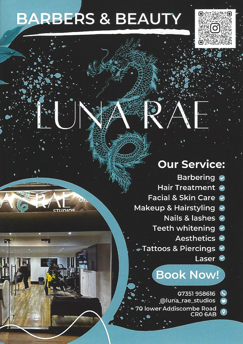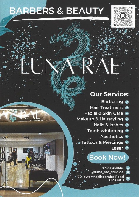 - Luna Rae, 70 Lower Addiscombe Road (barbers & beauty)