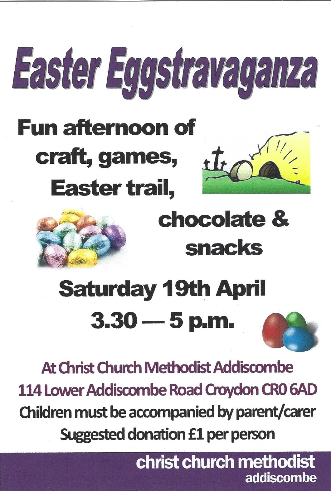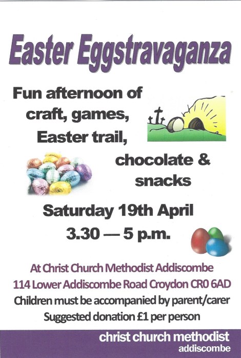 Easter Eggstravaganza 3.30pm Saturday, 19 April at Christ Church, 114 Lower Addiscombe Road Apr 16, 2025 · by eastcroydon · in Faith & Charity, Family & Education. · Share this: Click to share on X (Opens in new window) X Click to share on Facebook (Opens in new window) Facebook Click to share on Bluesky (Opens in new window) Bluesky Click to share on Nextdoor (Opens in new window) Nextdoor Like Loading... Related