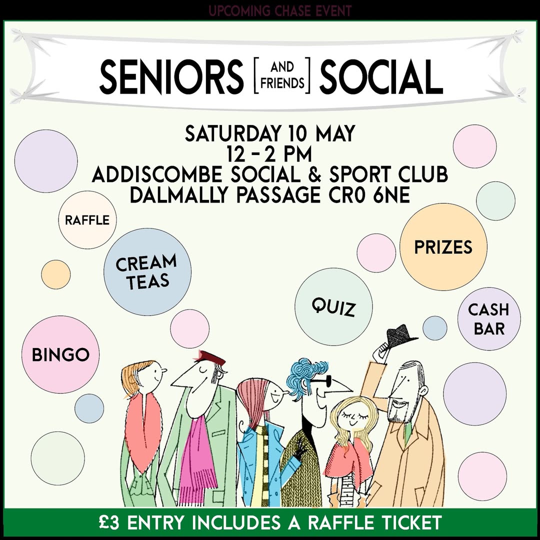 Seniors Social 12 – 2pm Saturday, 10 May at Addiscombe Social & Sport Club, Dalmally Passage #croydon May 9, 2025 · by eastcroydon · in Family & Education, Sport & Leisure. · Share this: Click to share on X (Opens in new window) X Click to share on Facebook (Opens in new window) Facebook Click to share on Bluesky (Opens in new window) Bluesky Click to share on Nextdoor (Opens in new window) Nextdoor Like Loading... Related