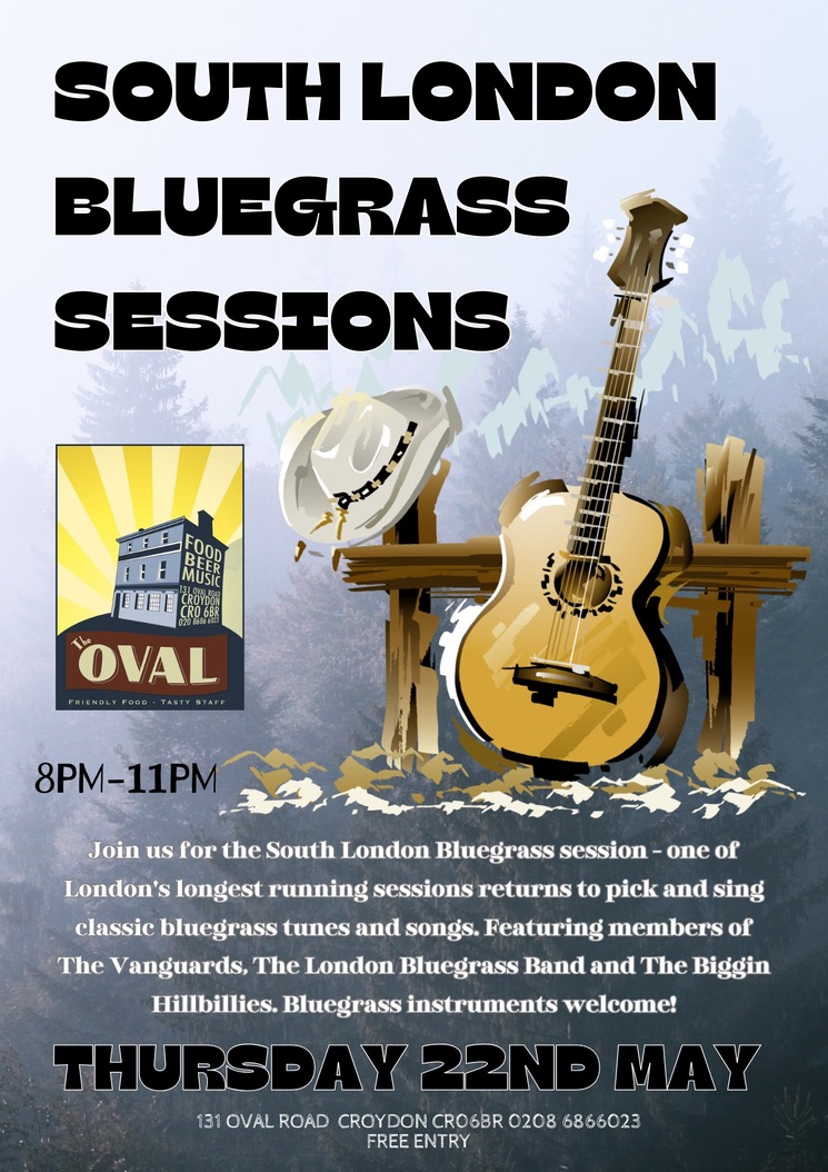South London Bluegrass Sessions 8pm Thursday, 22 May at The Oval Tavern #croydon May 19, 2025 · by eastcroydon · in Sport & Leisure. · More information about The Oval Tavern https://www.facebook.com/theovalcroydon Share this: Click to share on X (Opens in new window) X Click to share on Facebook (Opens in new window) Facebook Click to share on Bluesky (Opens in new window) Bluesky Click to share on Nextdoor (Opens in new window) Nextdoor Like Loading... Related