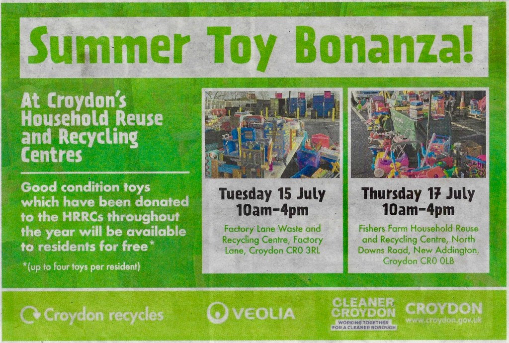 The recycling centre is not far from the last stop on the New Addington branch of the tram line. More information https://www.croydon.gov.uk/rubbish-and-recycling/reuse-and-recycling-centres-0/our-sites