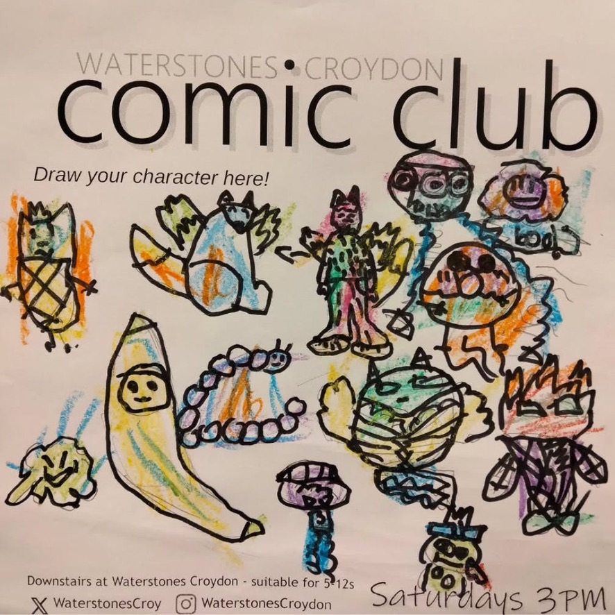 Comic club for 5-12 year olds 3pm Saturdays at Waterstones book shop, Whitgift Centre #croydon Jul 18, 2025 · by eastcroydon · in Family & Education, Sport & Leisure. · More information https://www.waterstones.com/events/search/shop/croydon Share this: Click to share on X (Opens in new window) X Click to share on Facebook (Opens in new window) Facebook Click to share on Bluesky (Opens in new window) Bluesky Click to share on Nextdoor (Opens in new window) Nextdoor Like Loading... Related