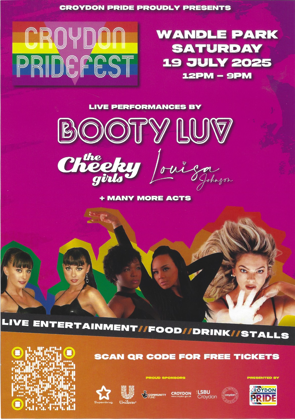 Get your FREE tickets for Croydon Pridefest 12-9pm Saturday, 19 July in Wandle Park #croydon Jul 18, 2025 · by eastcroydon · in Sport & Leisure, Uncategorized. · You must register your tickets in advance. More information https://www.croydonpride.org.uk/pridefest-2025-tickets/ Share this: Click to share on X (Opens in new window) X Click to share on Facebook (Opens in new window) Facebook Click to share on Bluesky (Opens in new window) Bluesky Click to share on Nextdoor (Opens in new window) Nextdoor Like Loading... Related