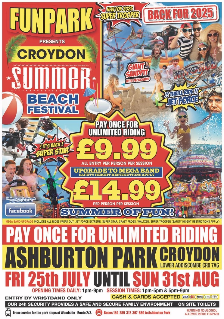Funpark 1 – 9pm Friday, 25 July to Sunday, 31 August in Ashburton Park #croydon Jul 24, 2025 · by eastcroydon · in Sport & Leisure. · Share this: Click to share on X (Opens in new window) X Click to share on Facebook (Opens in new window) Facebook Click to share on Bluesky (Opens in new window) Bluesky Click to share on Nextdoor (Opens in new window) Nextdoor Like Loading... Related