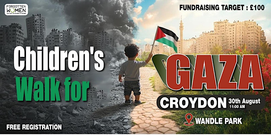 Children’s Walk for Gaza 11am Saturday, 30 August in Wandle Park #croydon Aug 25, 2025 · by eastcroydon · in Faith & Charity, Family & Education. · More information https://www.eventbrite.co.uk/e/childrens-walk-for-gaza-palestine-in-croydon-london-tickets-1548021506999 Share this: Click to share on X (Opens in new window) X Click to share on Facebook (Opens in new window) Facebook Click to share on Bluesky (Opens in new window) Bluesky Click to share on Nextdoor (Opens in new window) Nextdoor Like Loading... Related