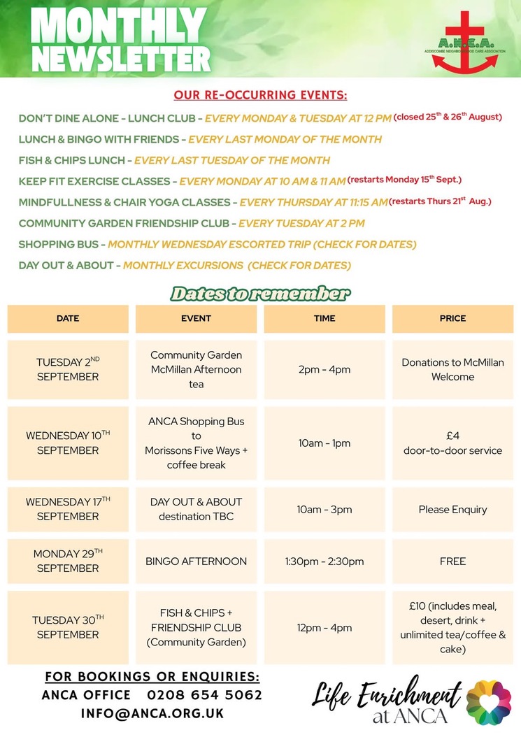 Addiscombe Neighbourhood Care Association activities in September at St Mildred’s Church, Bingham Road #croydon Aug 28, 2025 · by eastcroydon · in Family & Education, Health & Beauty, Uncategorized. · More information http://www.anca.org.uk Share this: Click to share on X (Opens in new window) X Click to share on Facebook (Opens in new window) Facebook Click to share on Bluesky (Opens in new window) Bluesky Click to share on Nextdoor (Opens in new window) Nextdoor Like Loading... Related