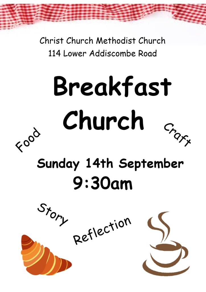 Breakfast church 9.30am Sunday, 14 September at Christ Church, 114 Lower Addiscombe Road #croydon Sep 11, 2025 · by eastcroydon · in Faith & Charity. · More information about Christ Church https://www.christchurchmeth.org.uk Share this: Click to share on X (Opens in new window) X Click to share on Facebook (Opens in new window) Facebook Click to share on Bluesky (Opens in new window) Bluesky Click to share on Nextdoor (Opens in new window) Nextdoor Like Loading... Related