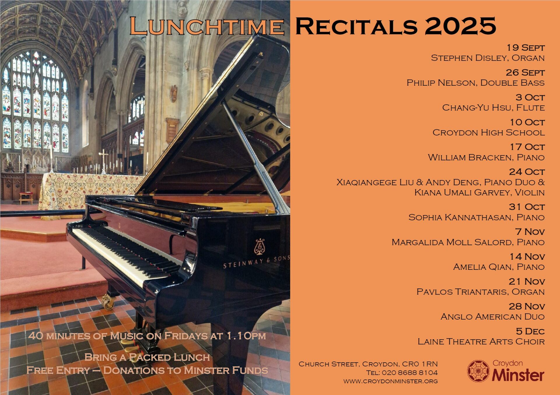 FREE lunchtime classical music recitals 1.10pm, Fridays from 19 September at Croydon Minster, Church Road #croydon Sep 16, 2025 · by eastcroydon · in Sport & Leisure, Uncategorized. · More information about Croydon Minster https://www.croydonminster.org Share this: Click to share on X (Opens in new window) X Click to share on Facebook (Opens in new window) Facebook Click to share on Bluesky (Opens in new window) Bluesky Click to share on Nextdoor (Opens in new window) Nextdoor Like Loading... Related