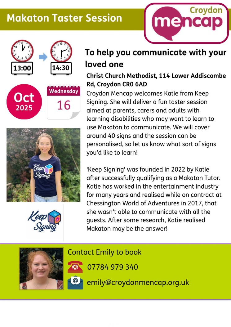 Makaton taster session 1pm Wednesday, 16 October at Christ Church, 114 Lower Addiscombe Road #croydon Oct 3, 2025 · by eastcroydon · in Family & Education, Uncategorized. · More information about Croydon Mencap https://www.croydonmencap.org.uk Share this: Click to share on X (Opens in new window) X Click to share on Facebook (Opens in new window) Facebook Click to share on Bluesky (Opens in new window) Bluesky Click to share on Nextdoor (Opens in new window) Nextdoor Like Loading... Related
