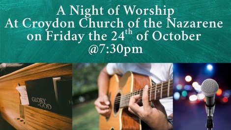 A night of worship 7.30pm Friday, 24 October at the Church of the Nazarene, 55 Lower Addiscombe Road #croydon Oct 22, 2025 · by eastcroydon · in Faith & Charity, Uncategorized. · More information about the Church of the Nazarene https://croydonnazarene.org Share this: Click to share on X (Opens in new window) X Click to share on Facebook (Opens in new window) Facebook Click to share on Bluesky (Opens in new window) Bluesky Click to share on Nextdoor (Opens in new window) Nextdoor Like Loading... Related