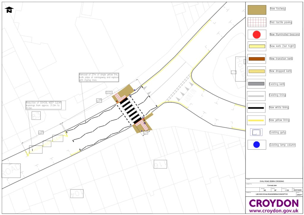 The zebra crossing will be outside the Oval Road entrance of Ark Oval Academy. It should be put in place between January and March 2026 and is one of the outcomes of the Healthy Streets initiative https://eastcroydon.org.uk/2024/04/05/healthy-streets-addiscombe-east-west-interim-feedback-7pm-thursday-18-april-in-the-large-hall-st-mildreds-bingham-road-yourcroydon-tfl/