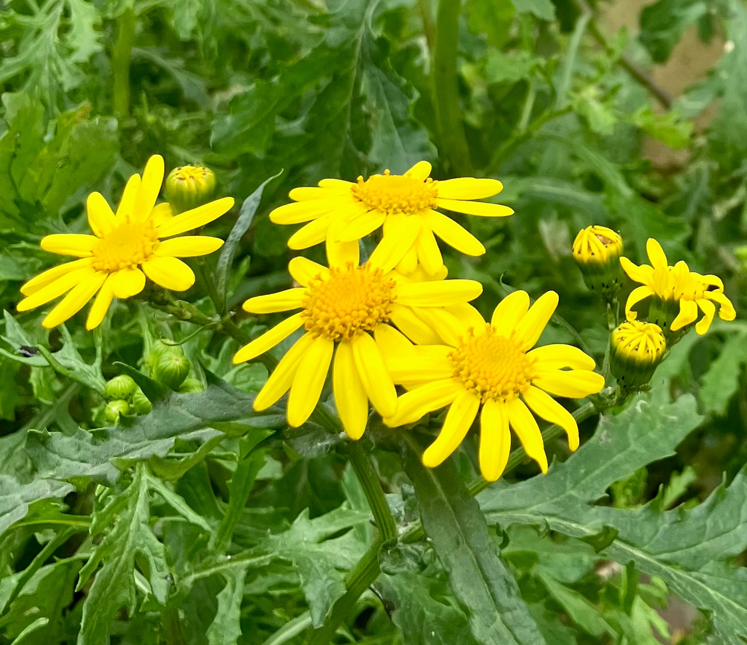 The wild flower pictured above is Oxford Ragwort (Senecio squalidus). It is a neophyte, introduced into Britain after 1500AD.