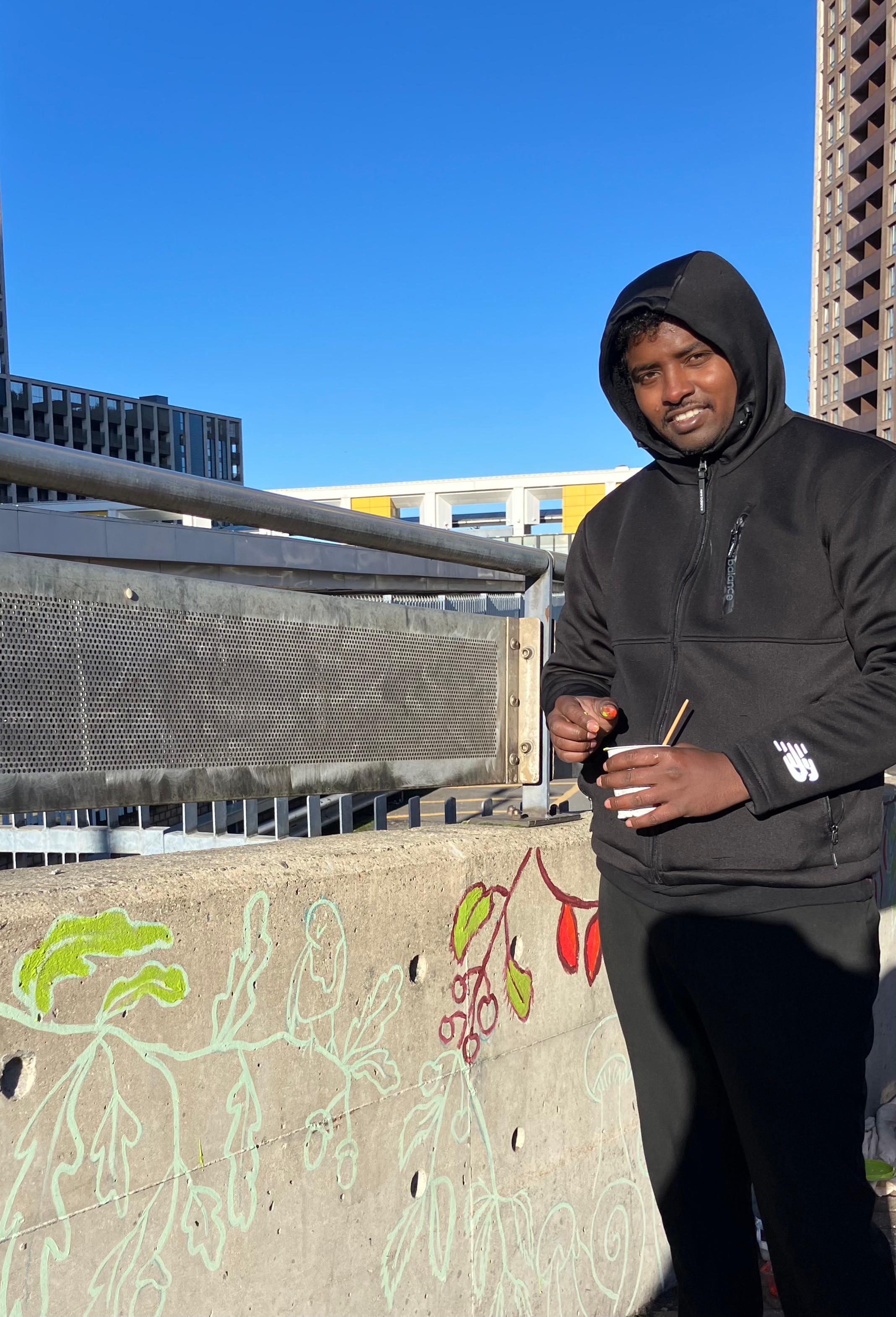 Mohammed from Gloucester Road was the first person to come forward to help colour in the outlines of the mural on Billinton Hill on Sunday 30 November, staying for an amazing six hours! By then, many more people had joined in. The mural is not completed yet and further drop-in sessions will be organised when the weather permits and the wonderful artist, Yvonne Tran, is available.