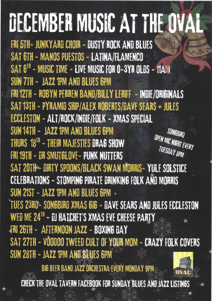 December 2025 music at The Oval Tavern, Oval Road #croydon Dec 4, 2025 · by eastcroydon · in Sport & Leisure. · More information about The Oval Tavern https://www.facebook.com/theovalcroydon Share this: Click to share on X (Opens in new window) X Click to share on Facebook (Opens in new window) Facebook Click to share on Bluesky (Opens in new window) Bluesky Click to share on Nextdoor (Opens in new window) Nextdoor Like Loading... Related