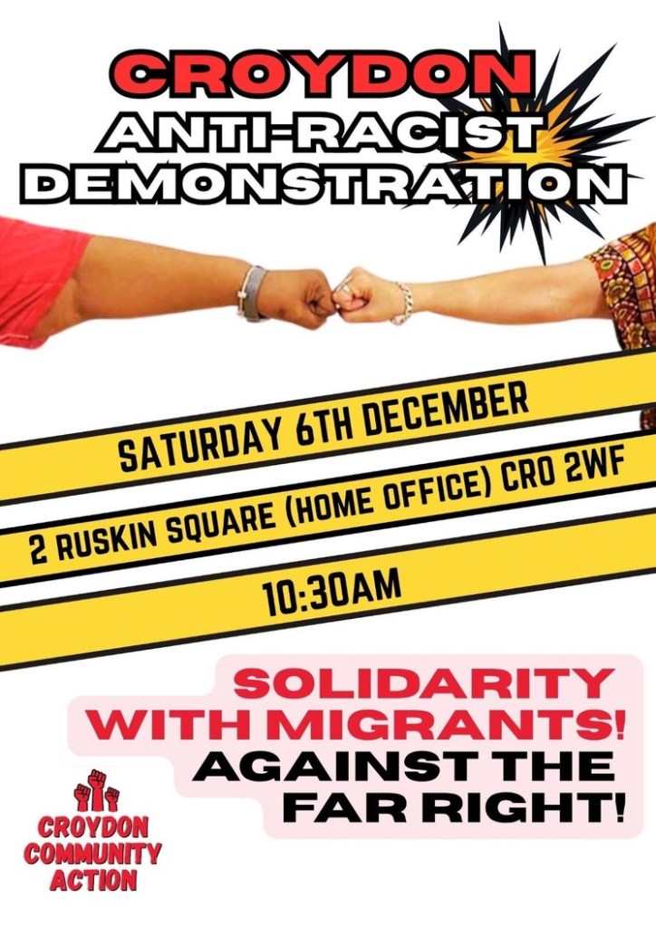 Anti-racist demonstration 10.30am Saturday, 6 December outside 2 Ruskin Square, off Dingwall Road #croydon Dec 5, 2025 · by eastcroydon · in Get Involved, Uncategorized. · More information https://www.instagram.com/p/DRpIYqRj5yo/?hl=en Share this: Click to share on X (Opens in new window) X Click to share on Facebook (Opens in new window) Facebook Click to share on Bluesky (Opens in new window) Bluesky Click to share on Nextdoor (Opens in new window) Nextdoor Like Loading... Related