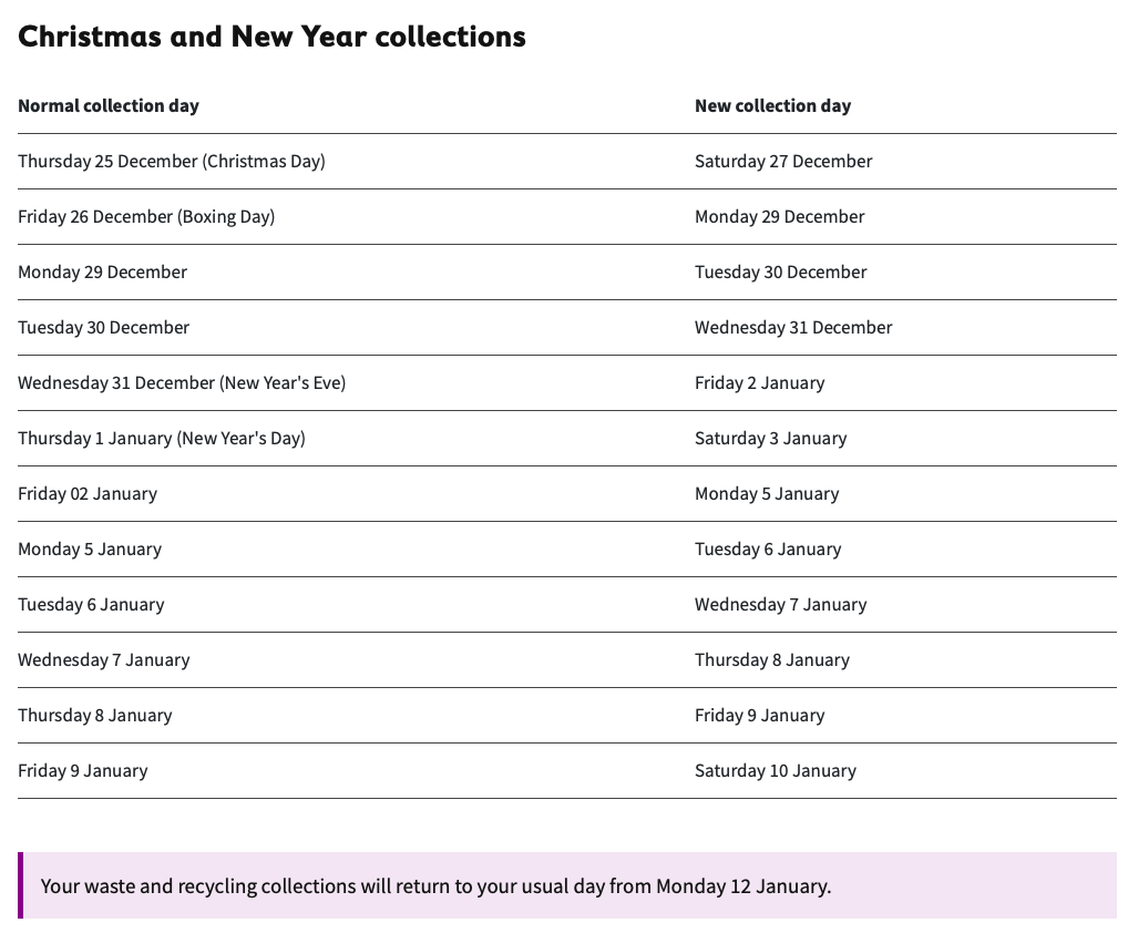Croydon Council services over Christmas, including changes to waste & recycling dates from 25 December – 12 January #croydon Dec 21, 2025 · by eastcroydon · in Environment & Recycling, Other, Uncategorized. · More information https://news.croydon.gov.uk/council-services-opening-hours-during-the-festive-season/?es_c=C4D270F0A99635011302C9B9C5C22F89&es_cl=E1373E66B3662961443605010A689441&es_id=p7h£24 Change to waste and recycling dates Share this: Click to share on X (Opens in new window) X Click to share on Facebook (Opens in new window) Facebook Click to share on Bluesky (Opens in new window) Bluesky Click to share on Nextdoor (Opens in new window) Nextdoor Like Loading... Related