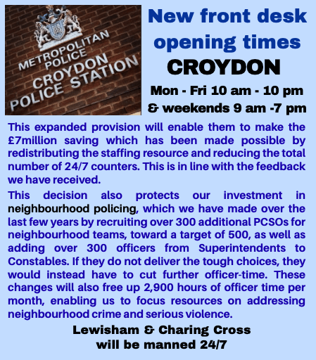 More information https://www.met.police.uk/area/your-area/met/croydon/addiscombe-west/meetings-and-events/our-priorities