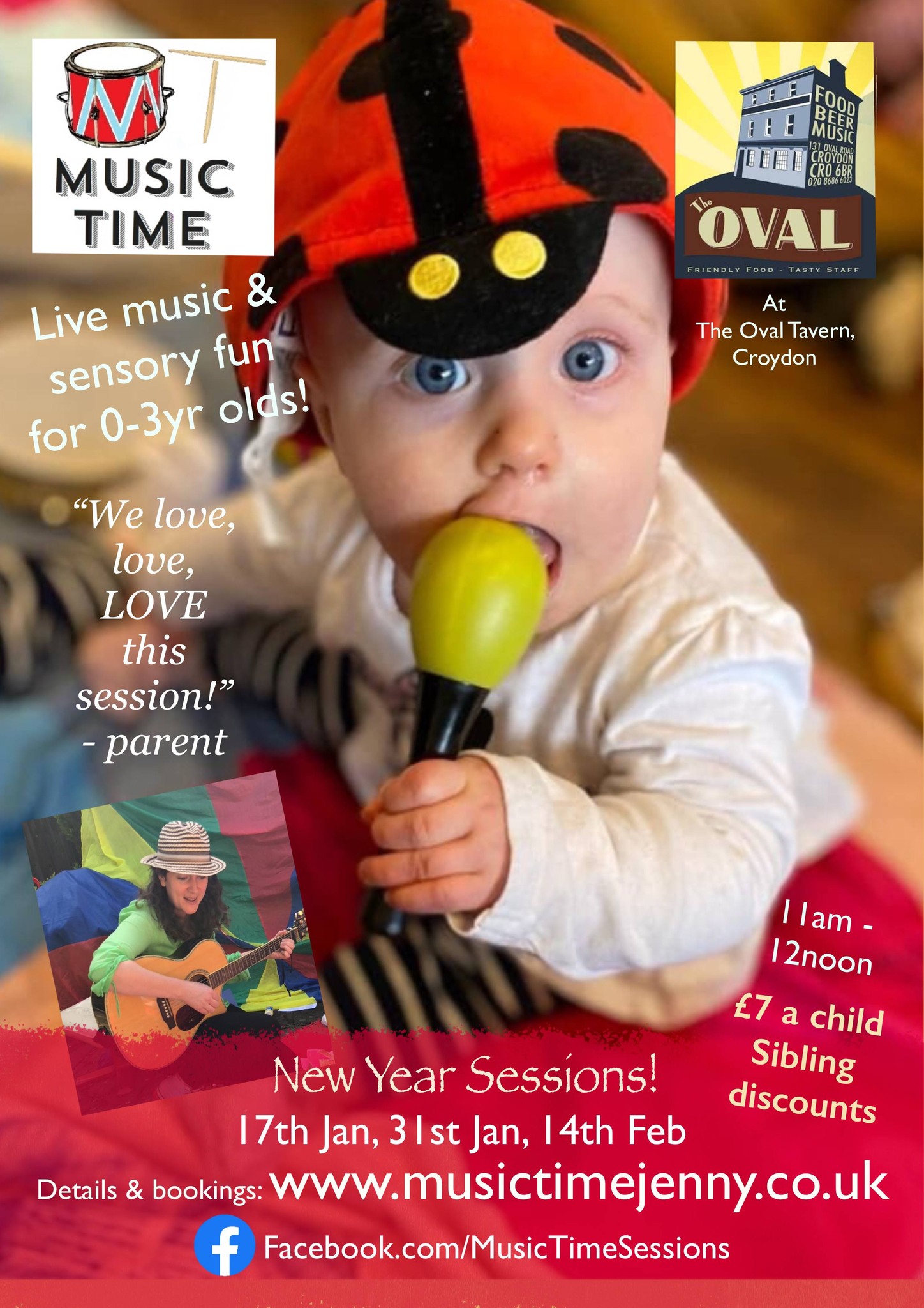 Music time for 0-3 year olds 11am Saturday, 17 January at The Oval Tavern, 131 Oval Road #croydon Jan 14, 2026 · by eastcroydon · in Family & Education, Sport & Leisure, Uncategorized. · More information and to book https://www.musictimejenny.co.uk/croydon Share this: Click to share on X (Opens in new window) X Click to share on Facebook (Opens in new window) Facebook Click to share on Bluesky (Opens in new window) Bluesky Click to share on Nextdoor (Opens in new window) Nextdoor Like Loading... Related