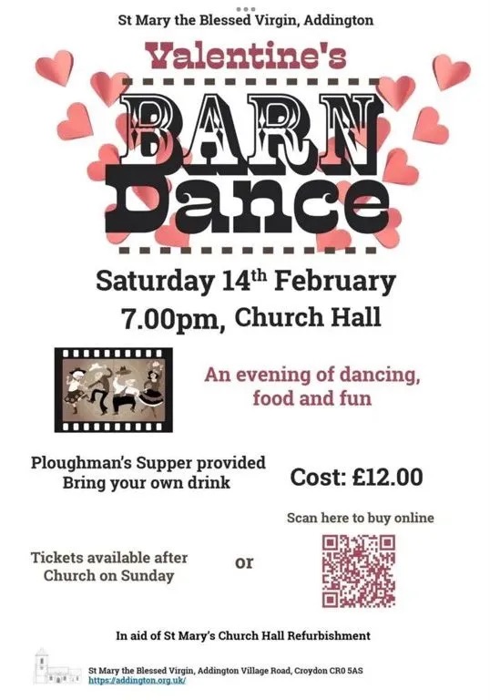 Barn dance 7pm Saturday, 14 February in St Mary’s Church Hall, Addington Village Road #croydon Feb 12, 2026 · by eastcroydon · in Faith & Charity, Sport & Leisure. · More information https://addington.org.uk/events#9080a906-06ba-431f-8347-9f212611a730 Share this: Share on X (Opens in new window) X Share on Facebook (Opens in new window) Facebook Share on Bluesky (Opens in new window) Bluesky Share on Nextdoor (Opens in new window) Nextdoor Like Loading... Related