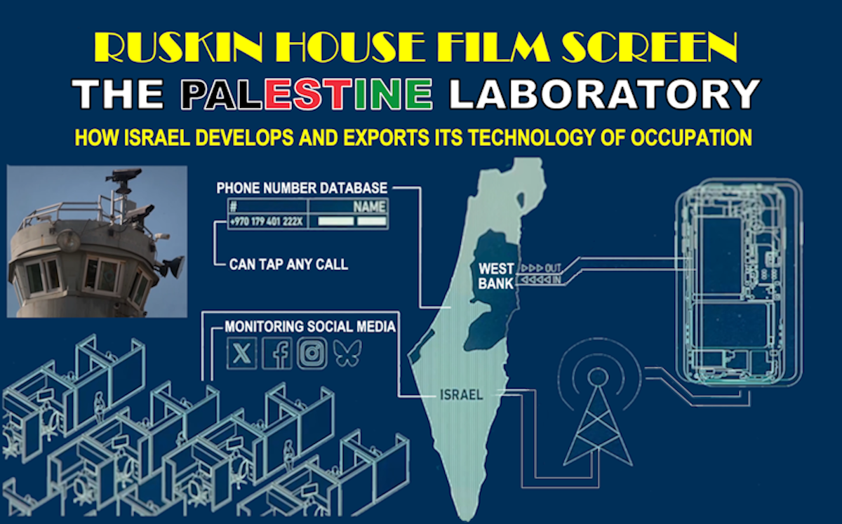 “The Palestine Laboratory” film 7.30pm Friday, 20 February at Ruskin House, 23 Coombe Road #croydon Feb 18, 2026 · by eastcroydon · in Politics & Law, Sport & Leisure. · More information https://www.eventbrite.co.uk/e/screening-the-palestine-laboratory-tickets-1980822348968 Share this: Share on X (Opens in new window) X Share on Facebook (Opens in new window) Facebook Share on Bluesky (Opens in new window) Bluesky Share on Nextdoor (Opens in new window) Nextdoor Like Loading... Related