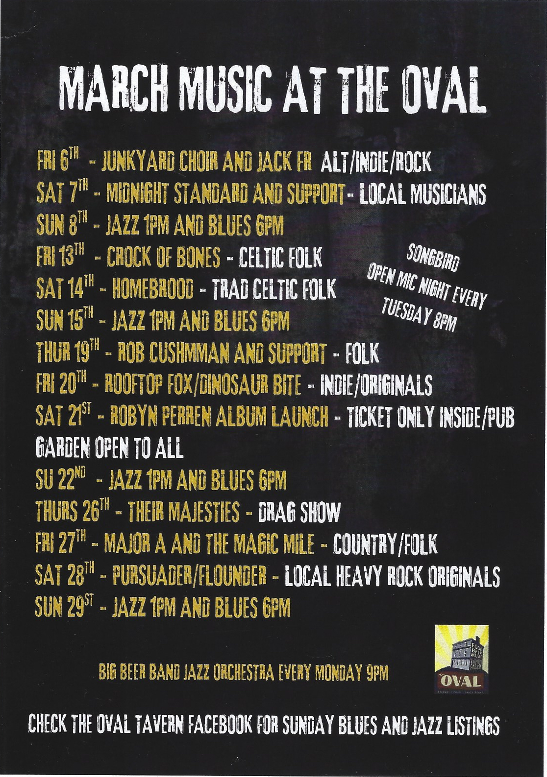 March music at The Oval Tavern, Oval Road #croydon Mar 3, 2026 · by eastcroydon · in Sport & Leisure, Uncategorized. · More information https://www.facebook.com/theovalcroydon Share this: Share on X (Opens in new window) X Share on Facebook (Opens in new window) Facebook Share on Bluesky (Opens in new window) Bluesky Share on Nextdoor (Opens in new window) Nextdoor Like Loading... Related